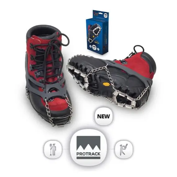 Τα κράμπον Pro Track είναι σχεδιασμένα για επαγγελματική χρήση παρέχοντας ευελιξία χρήσης από πάγο σε χιόνι, κορμούς-ρίζες δέντρων, βιομηχανικούς χώρους και πεζοδρόμια υψηλής αντίστασης. Οι ειδικά σχεδιασμένες ακίδες προσφέρουν εξαιρετικό κράτημα και ταυτόχρονα μειώνουν τον κίνδυνο παγίδευσης σε σχάρες, μεταλλικά σκαλιά και σε διάφορες βιομηχανικές επιφάνειες. Ο μεγάλος αριθμός μικρό-ακίδων μειώνει τον κίνδυνο φθοράς σε βιομηχανικά δάπεδα ενώ ταυτόχρονα εξασφαλίζει ιδανικό κράτημα στον πάγο.