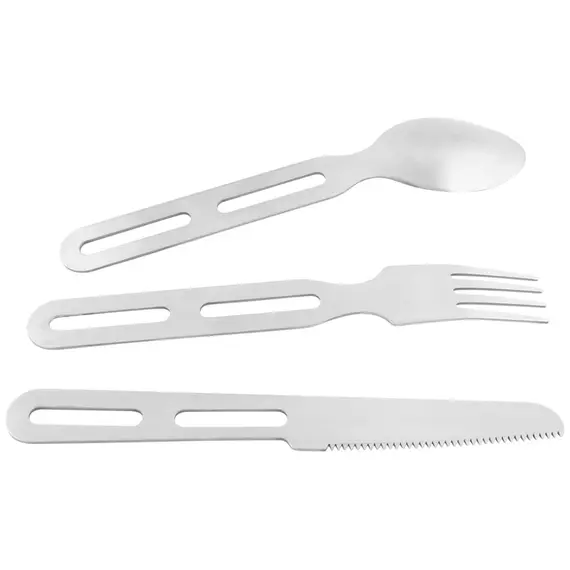 Cutlery Set I Σετ Μαχαιροπίρουνα Tatonka Περιλαμβάνονται 1 μαχαίρι, 1 πιρούνι, 1 κουτάλι και πρακτική, θήκη μεταφοράς Χρήση: Πεζοπορία, Camping, Ταξίδια Υλικό: Edelstahl 18/8 100% Ανοξείδωτο Ατσάλι Διαστάσεις / Βάρος - Μαχαίρι: 2 x 17.5 cm / 28 gr - Πιρούνι: 2.5 x 17.5 cm / 30 gr - Κουτάλι: 3.8 x 17.8 cm / 42 gr - Στην θήκη μεταφοράς: 18 x 4 cm / 100 gr Κατασκευάζεται με γνώμονα το σεβασμό για το περιβάλλον - PFC-free: Χωρίς τη χρήση χημικών ενώσεων, επιβλαβών για το περιβάλλον