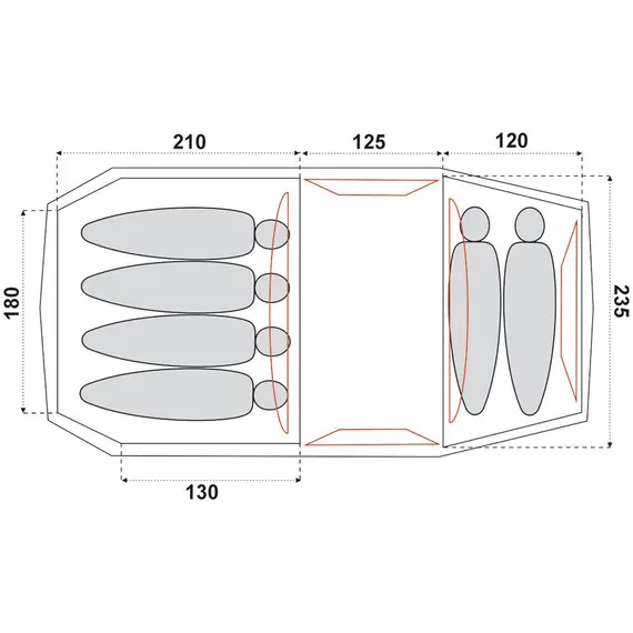 Διαστάσεις εσωτερικής σκηνής: 120 x 235, 210 x 235 cm