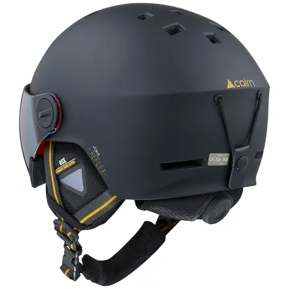 Reflex Visor Mat Black Gold Κράνος Cairn Φακός: Πανοραμικοί φακοί cat 3 Μπροστινοί και πλαϊνοί αεραγωγοί για μέγιστο αερισμό Σύστημα προστασίας αυτιών Ρυθμιζόμενο σύστημα για καλύτερη εφαρμογή του κράνους Ασφαλές δέσιμο με κλιπ για το λουρί της μάσκας Εργονομικό εσωτερικό κάλυμμα από υποαλλεργικό ύφασμα Αποσπώμενη πλενόμενη επένδυση fleece Διαθέτει θήκη για προστασία στην αποθήκευση ή στη μεταφορά Βάρος: 490gr Πιστοποίηση: CE EN 1077 CLASS B